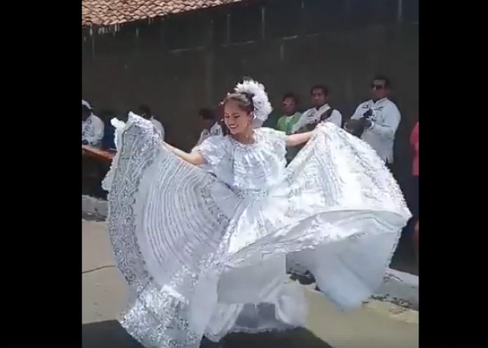 Stefanía aparece hermosa, bailando en las calles de su humilde pero precioso pueblo… ella está ataviada con un impresionante traje folclórico color blanco, diseñado por el artista Carlos Nicaragua… también luce unas flores del mismo color en su cabeza, por último, lleva puesto un elemento que toda bailarina debe tener y es una sonrisa… con la que hasta el día de hoy continúa conquistando al mundo entero y representando a su hermoso municipio.