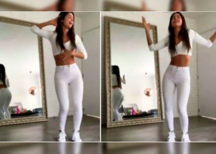 Vestida con un ajustado pantalón blanco y con un espejo de fondo, la protagonista de “Sin senos no hay paraíso”, mueve sus caderas al ritmo del éxito “Ya no me duele más” de Silvestre Dangond y sus fanáticos han enloquecido.