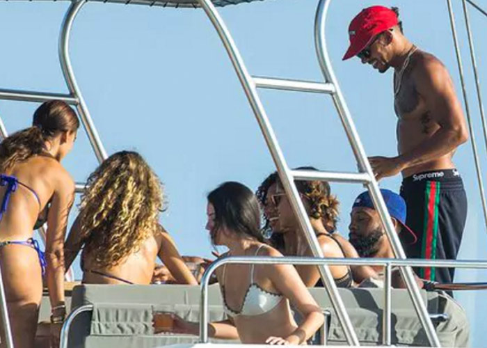 La condición para subir a la embarcación, al menos para las mujeres, era disfrutar del sol y lucir bikinis. En las fotos se ven al menos 12 personas, seis mujeres y seis hombres, todos amigos de Hamilton.