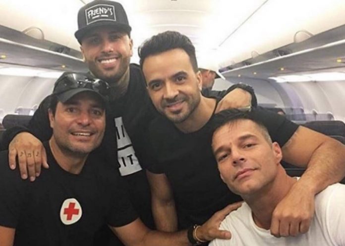 A tempranas horas de la mañana, Fonsi había publicado en sus redes sociales una foto con Martin, Chayanne y Nicky Jam adentro de una aeronave, junto al texto: “Unidos más que nunca por Puerto Rico. Por ahí vamos… #UnidosPorPuertoRico”.