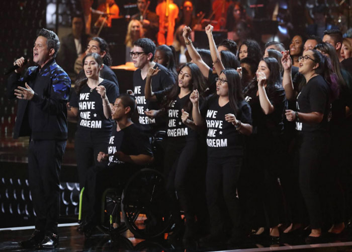 Pero quizás el momento más estremecedor de la noche vino cuando Juan Luis Guerra subió al escenario para entregarle el premio como la Persona del Año a Alejandro Sanz, quien dedicó de manera especial su galardón a los DREAMers.