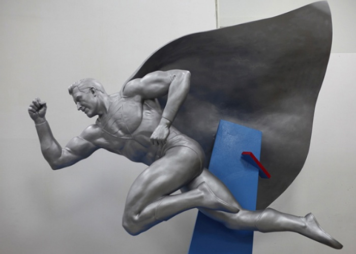 La estatua de 1.814 kilos y tres metros de altura incluye un homenaje a Jerry Siegel y Joe Shuster, quienes fueron creados en el legendario personaje de los cómics en la década de 1930.