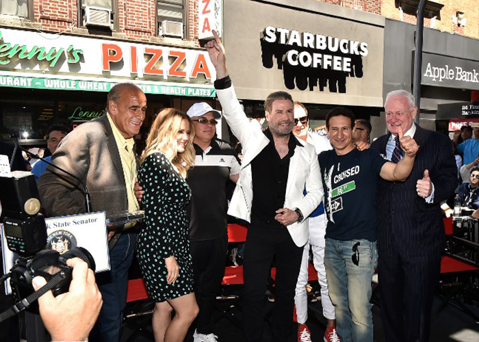 Decenas de personas se agolparon en la calle 86 del vecindario Bensonhurst de Brooklyn para presenciar un acto que tuvo lugar a las afueras de la pizzería Lenny's, donde Tony Manero, el joven interpretado por Travolta, compró dos trozos de pizza que comió mientras recorría la zona en la icónica película.