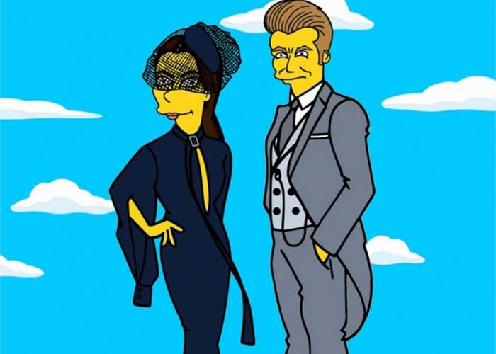 El artista aleXsandro Palombo transformó a Victoria y David Beckham en personajes de la serie animada 'Los Simpson'.