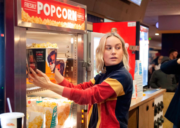 Brie Larson , de 29 años, sorprendió la noche de este sábado a los fanáticos que llegaron a ver su película en un cine de Los Ángeles. La ganadora del Oscar sirvió popcorn y bebidas a algunos de los asistentes.