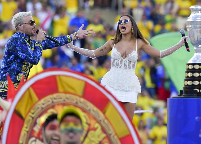 El boricua Pedro Capó y la brasileña Anitta se presentaron durante la ceremonia de clausura de la Copa América 2019, en la que se enfrentaron la selección de Perú frente a la de Brasil