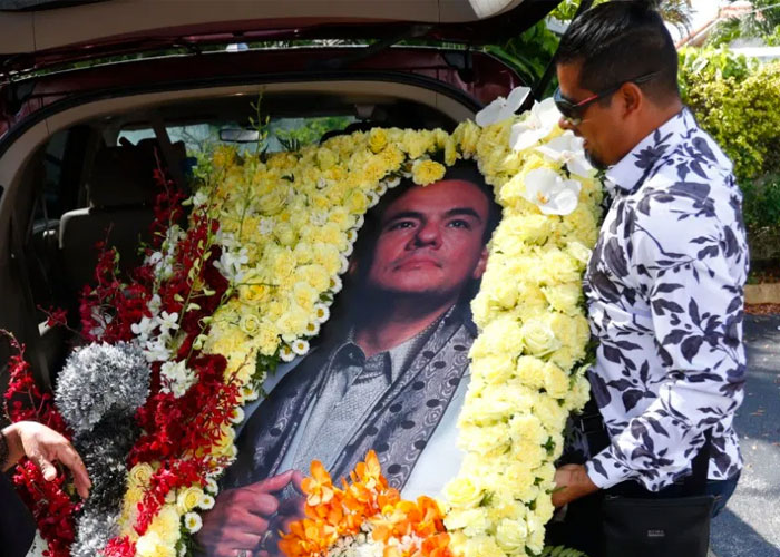 El velorio comenzó con un breve acto privado en el que hablaron Sarita y sus dos hermanos mayores, Marysol y José Joel, que llegaron desde México y son hijos de un matrimonio anterior del artista. También estuvieron Sara, su última esposa, así como el alcalde del condado de Miami-Dade Carlos Giménez, y el cónsul de México en Miami, Jonathan Chait.