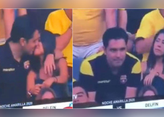 ayer durante el partido de Barcelona de Guayaquil y Delfin en Ecuador, joven se vuelve viral por su actitud en la #KissCam Los usuarios de distintas redes no dudaron en buscar su perfil en donde dicen aparece en fotos con otra mujer. ? pic.twitter.com/SsXRsPaiE4— Guía Alterna (@GuiaAlterna) January 19, 2020
