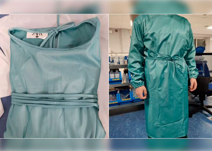 Según se puede ver en las fotos que han llegado a redes sociales, las batas son de color verde claro y, por supuesto, llevan en la etiqueta el nombre de su marca insignia: Zara.