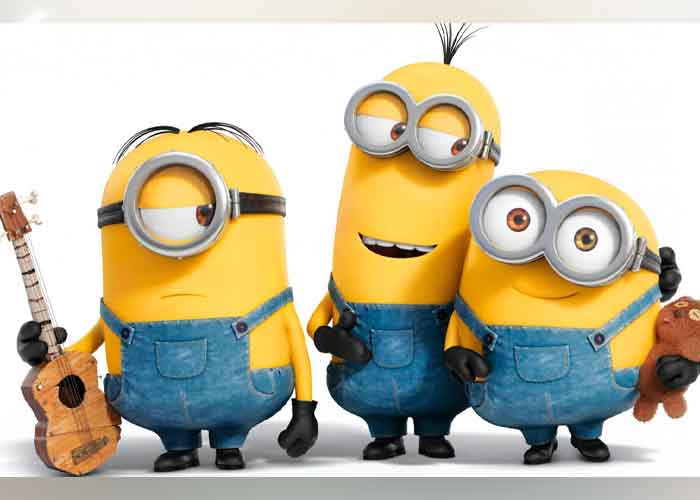 Las versiones de juguetes de peluche de los personajes amarillos con forma de píldora se desplegaron en el cine MK2 en el sur de París para la exhibición de la película de 2015 “Minions”, un “spin-off” de la franquicia “Despicable Me” que los volvió famosos.