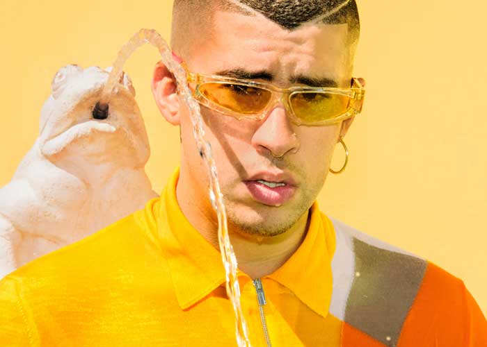 La pintura presenta el rostro de Bad Bunny con líneas de diferentes colores, como blanco, rojo, azul, amarillo, anaranjado, verde y negro, enseñando su lengua, usando sus distintivas gafas, un tercer ojo en su frente y sus dos meñiques señalando su cara.