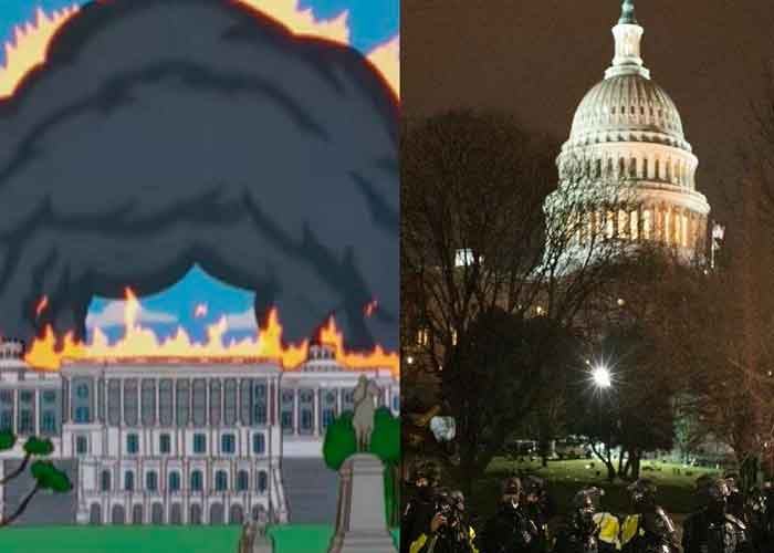 El mítico episodio muestra que a Homero no le interesan las elecciones por lo que no sale a votar. Marge lo regaña, pero él solo responde: ‘¿qué tan malo puede ser?. Un segundo después se ve que ya es enero de 2021 y Springfield está en llamas y destruida debido a las protestas por los resultados de la elección.