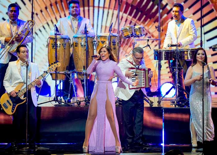 La popular banda de cumbia mexicana Los Ángeles Azules, ganadores de “Premio al Legado Musical” este año, celebró en el escenario con sus clásicas “El listón de tu pelo”, “Mis sentimientos” y “Cómo te voy a olvidar”, en un número cross-over que incluyó a la estrella de música regional mexicana Chiquis, el popular grupo de rock Kinky y la superestrella del pop Gloria Trevi.