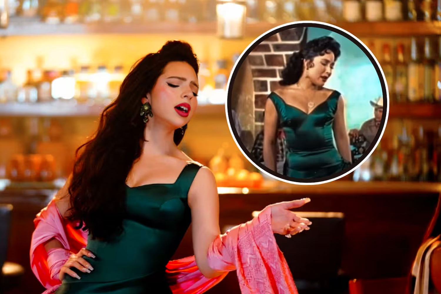 El video original que inspiró a Ángela pertenece al tema “Una sola caída”, de 1964, donde Flor Silvestre aparece con un vestido verde, el cabello recogido y un adorno dorado en el pecho. Todos estos elementos fueron cuidadosamente replicados en el tributo para mostrar respeto y continuidad artística entre generaciones.