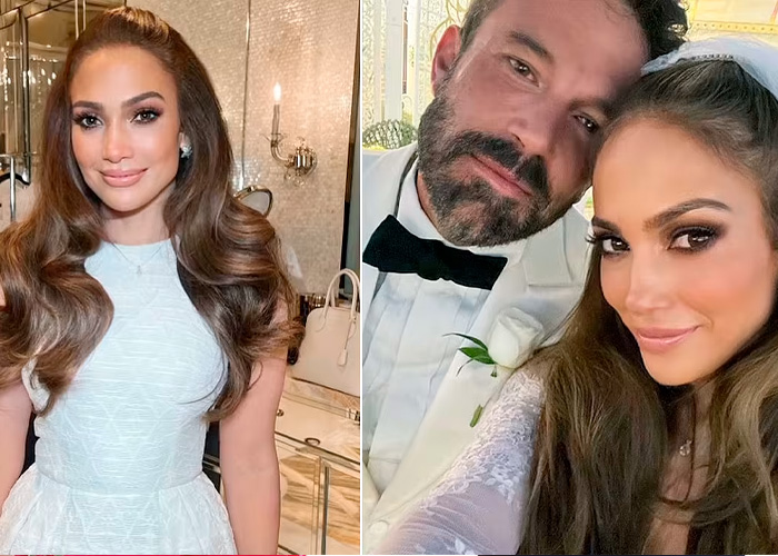 Para la ceremonia, Jennifer Lopez usó un impresionante vestido blanco Ralph Lauren de alta costura, mientras que Ben Affleck lució elegante en un esmoquin blanco, acompañado de una chaqueta clásica.
