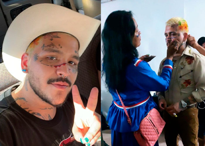 El fin de semana pasado, Nodal dio una presentación en Hermosillo, Sonora, para la que reveló un radical cambio de look, por el que lo compararon con J Balvin debido a su corte de cabello y los intensos colores que usó. No obstante, antes de subir al escenario, el intérprete se pintó en la cara unas ilustraciones de la comunidad indígena de «comca’ac».