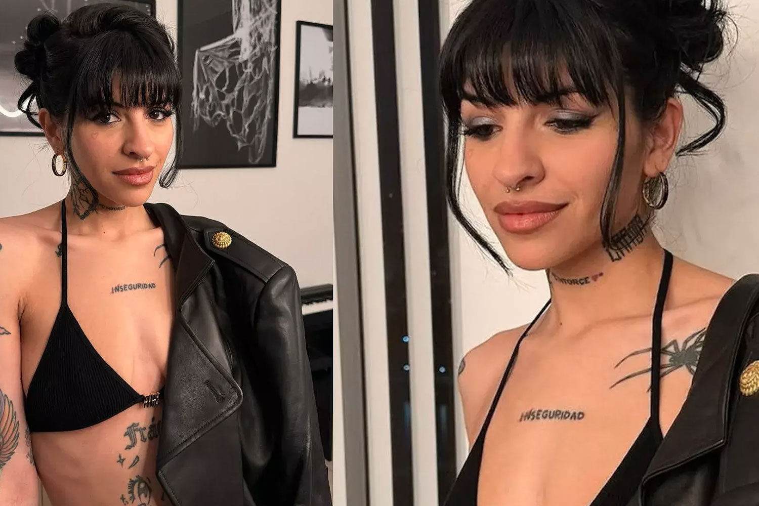 Cazzu optó por un diseño atrevido total black, este consistió en una falda midi tipo lápiz y un top estilo sostén en color negro que dejó ver muhos de sus tatuajes. Su look ¡Fue considerado como el vestido de “la venganza”!.
