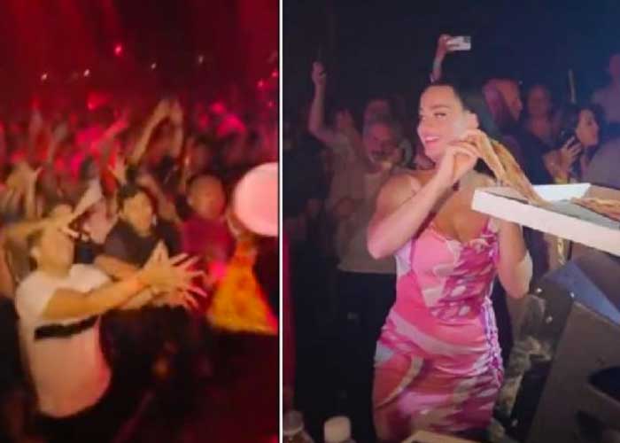 Las imágenes que muestran a Katy Perry arrojando pizza al público que se dio cita el fin de semana en el club nocturno Zouk, de Las Vegas; generaron gran euforia, así como controversia, pues mientras varios se divertían, otros criticaban el «feo acto» por parte de ella.