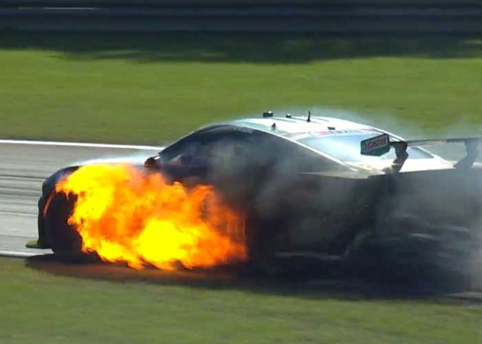 El piloto reaccionó rápidamente, detuvo el vehículo y se bajó de él. Debido a que su puerta estaba envuelta en llamas y el calor le impedía salir por allí, tuvo que escapar por la puerta del acompañante. Afortunadamente, logró tomar el extintor reglamentario y comenzó a apagar el fuego al bajarse.
