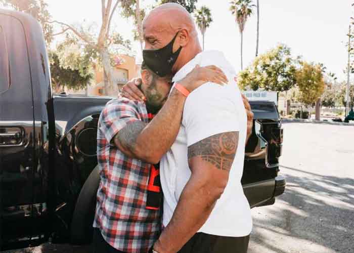 El actor Dwayne Johnson, más conocido como La Roca, regaló su propia camioneta a uno de sus seguidores, Oscar Rodríguez, un veterano de la Marina de origen hispano cuya historia lo conmovió.