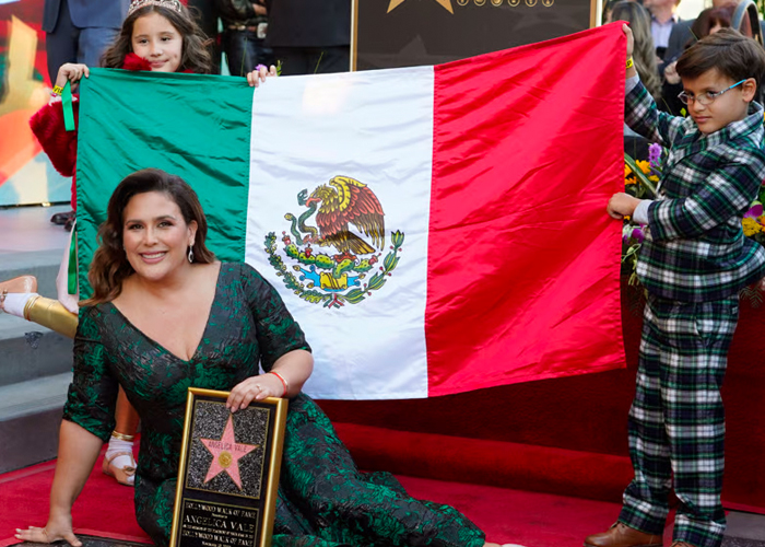 La Vale, como es llamada cariñosamente, recibió el reconocimiento por su trayectoria en el teatro y posó sonriente con la bandera de México como acompañante; su amigo Jaime Camil, Pepe Aguilar y la actriz Kate del Castillo estuvieron presentes.