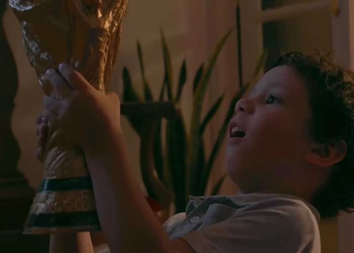 «Felicidades a todos los campeones del mundo»; puede leerse en un texto que aparece en el final del anuncio; mientras el chiquitín le da un beso a la Copa del Mundo.