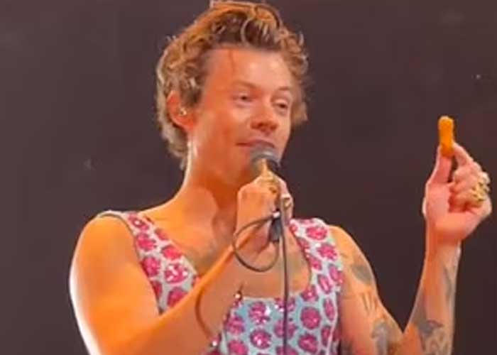 “Interesante, un enfoque muy interesante. ¿Quién tiró el nugget de pollo?”; preguntó Harry Styles mientras guardaba la compostura y tomándose con filosofía la enésima ocurrencia de sus fans.