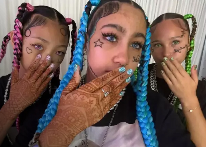 En varios videos publicados en su cuenta de TikTok, North West sorprendió con tatuajes falsos en el rostro, incluyendo una estrella bajo el ojo derecho y su nombre en letra cursiva del lado izquierdo.