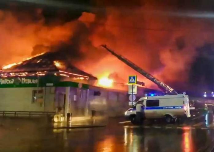 A large fire broke out at night in the Polygon nightclub in #Kostroma, #Russia.