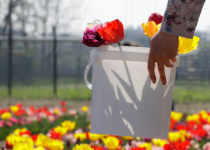 El campo de una hectárea tiene 183 variedades de tulipanes rojos, púrpuras y amarillos. Cada uno recoge los que le gustan y paga tres euros por cada dos, pero muchos optan por llevarse muchos más.