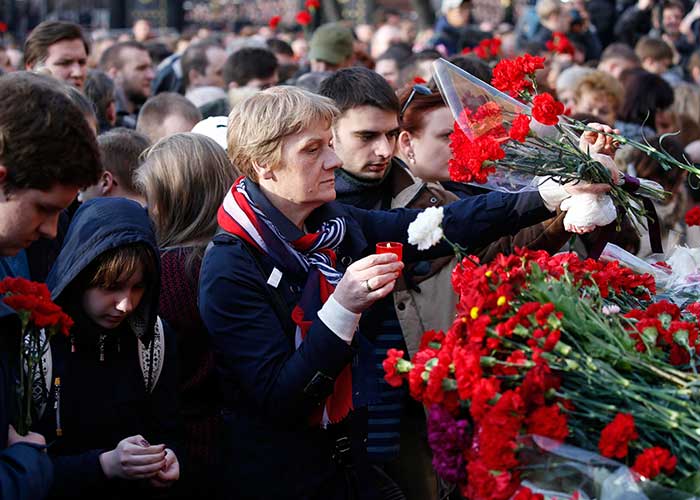 Unas diez mil personas se reunieron en el centro de Moscú para depositar flores en homenaje a las víctimas, según un periodista de la AFP en el lugar.
