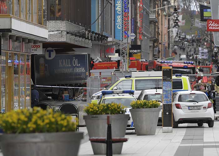 Cuatro personas murieron y 15 resultaron heridas este viernes en el centro de Estocolmo en un atentado con camión, indicó la policía, que el viernes por la noche seguía buscando al conductor.