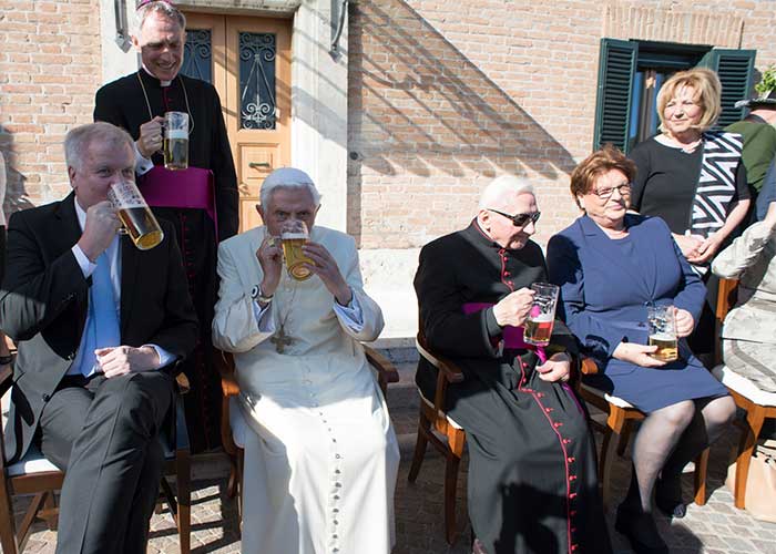 En la celebración tampoco faltaron las jarras de cerveza, que degustaron tanto Benedicto XVI como su hermano, Georg Ratzinger, de 93 años, y el secretario personal del pontífice alemán y prefecto de la Casa Pontificia, Georg Gänswein, entre otros.