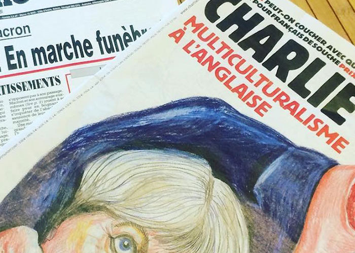 Theresa May on the front of Charlie Hebdo in France ?? pic.twitter.com/RhNiAxexcN