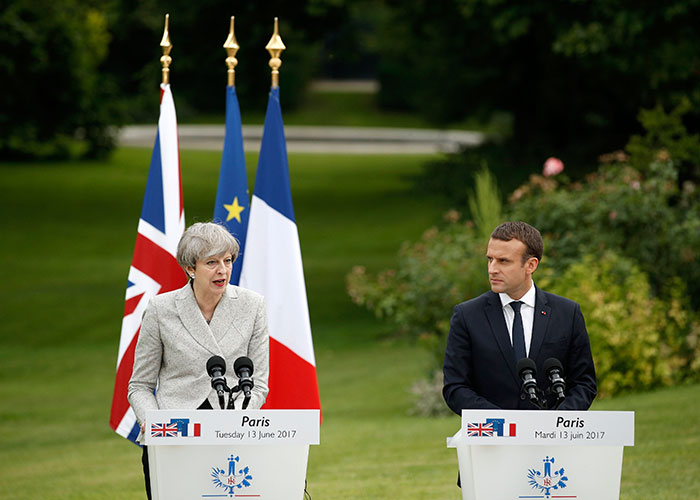 París, 13 jun (EFE).- El presidente de Francia, Emmanuel Macron, y la primera ministra británica, Theresa May, acordaron hoy en París reforzar el combate a la propaganda yihadista en internet y mostraron posturas conciliadores antes de que empiecen las negociaciones para que el Reino Unido abandone la UE.