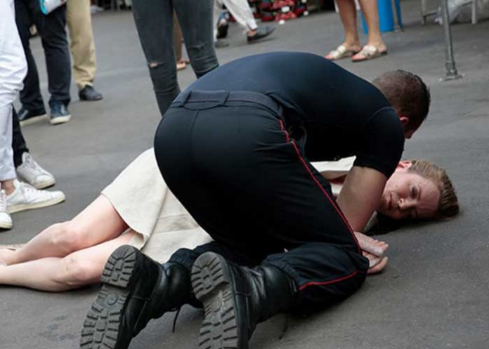 Los médicos ayudaron a la candidata y la llevaron al hospital, mientras que el hombre que agredió a la política escapó corriendo a la estación del metro más cercana.