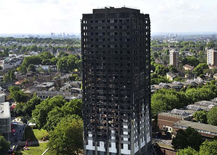 Un material supuestamente prohibido en Reino Unido fue usado para el revestimiento de la torre Grenfell de Londres, donde un equipo de funcionarios empezó a colaborar hoy en la organización de la ayuda a los afectados por el incendio.