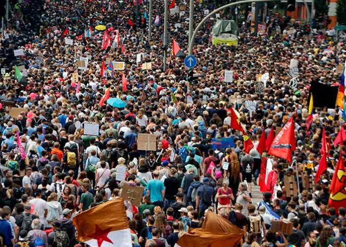 La mayoría de los manifestantes se movilizaron pacíficamente para reclamar medidas inmediatas contra el cambio climático y soluciones a la crisis de la migración, pero varios miles, algunos de ellos extranjeros, generaron el caos en la ciudad al enfrentar a la policía por segundo día, expresar su furia contra el capitalismo y la globalización y exigir la apertura de las fronteras europeas para todos los refugiados. Su furia no apuntó hacia los gobernantes sino hacia la policía como símbolo de la autoridad.