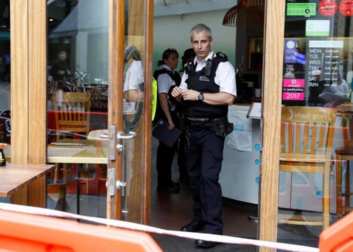 La policía británica, que no ha hecho todavía ningún arresto en relación al caso, fue avisada a las 13.38 hora local (12.38 GMT) y al lugar se desplazaron asimismo efectivos de los bomberos, que entraron al restaurante con equipos protectores.