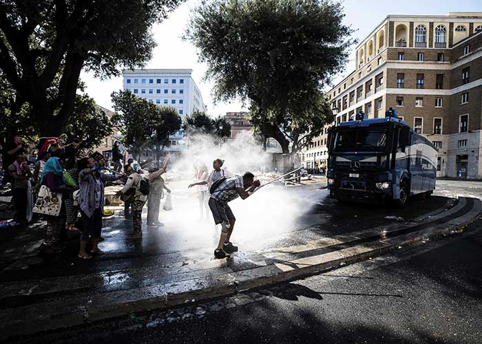 El suceso comenzó a primera hora de la mañana local, cuando agentes de policía procedieron al desalojo de un centenar de personas -entre ellas mujeres, ancianos y discapacitados- que estaban acampadas desde el sábado en la plaza romana Independencia, cerca de la estación de Termini.