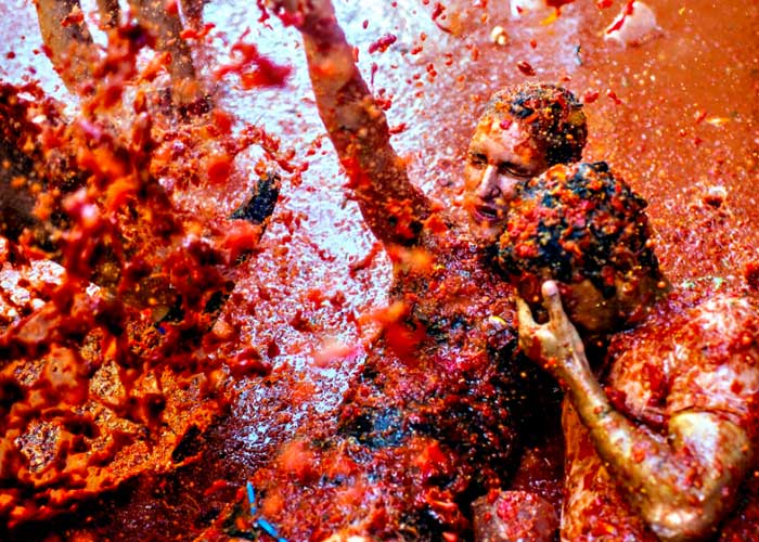 Este miércoles, la localidad valenciana de Buñol (España) celebra su fiesta anual más famosa, la Tomatina, la batalla a tomatazos en la que miles de personas de todos las rincones del mundo se reúnen para arrojarse esta hortaliza las unas a las otras durante una hora.