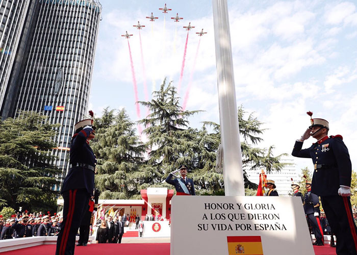 El avión siniestrado es uno de los cuatro Eurofighter que participaron hoy en el desfile de las Fuerzas Armadas procedentes de la base aérea albaceteña de Los Llanos, junto a otros cuatro pertenecientes a la base de Morón, en Sevilla (sur).