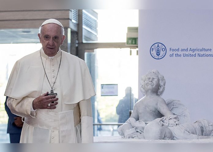 Francisco visitó la agencia por el Día Internacional de la Alimentación y allí inauguró también una escultura que representa al niño sirio Aylan Kurdi, ahogado en 2015 en el Mediterráneo y símbolo del drama de los refugiados en su huida a Europa.