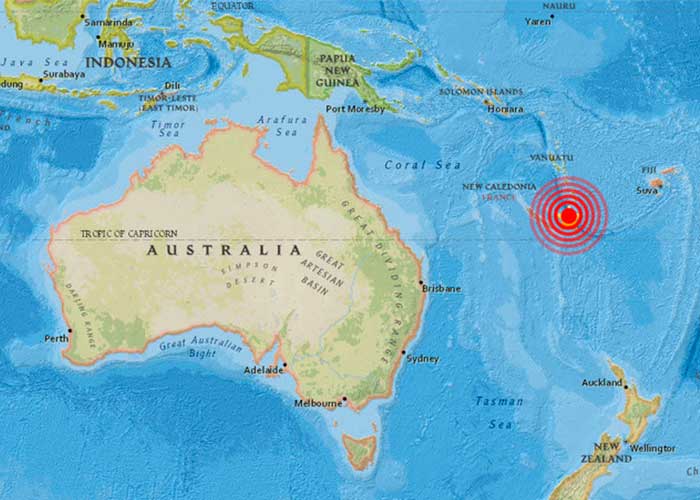 El Centro de Alerta de Tsunamis del Pacífico advirtió de posibles olas en un radio de 300 kilómetros desde el epicentro del sismo. Nueva Caledonia es un territorio francés formado por varias islas.