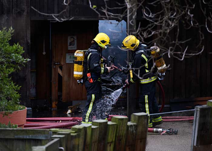 Los bomberos permanecerán en el zoológico el resto de la mañana para mantener húmedo cualquier pequeño rescoldo, indicó el director de la Brigada de Bomberos de Londres, Clive Robinson.