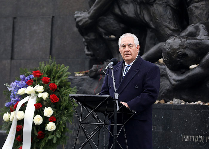 En Varsovia, el secretario de Estado estadounidense Rex Tillerson expresó sus respetos durante una ceremonia solemne en memoria de los judíos que murieron al rebelarse contra las fuerzas alemanas durante el levantamiento del gueto de Varsovia de 1943.
