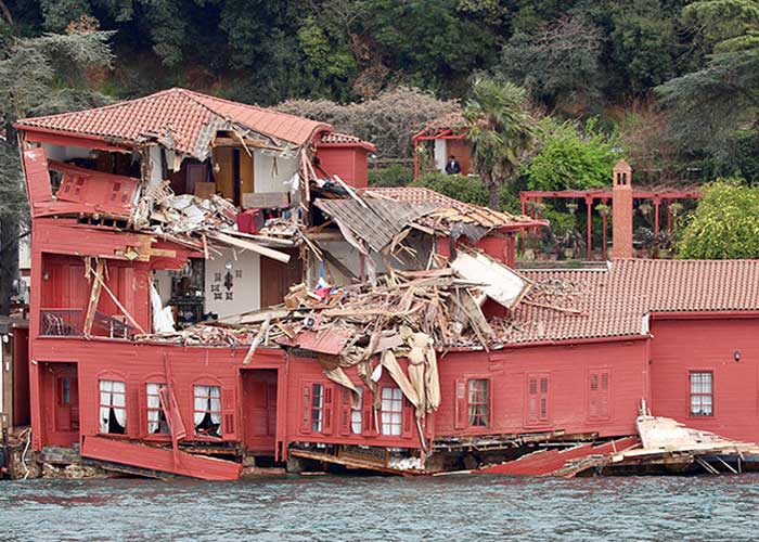 El yali Hekimbasi Salih Efendi, un edificio de madera pintado de rojo de tres pisos, especialmente bien conservado, quedó destrozado en gran parte, constató un periodista de la AFP.