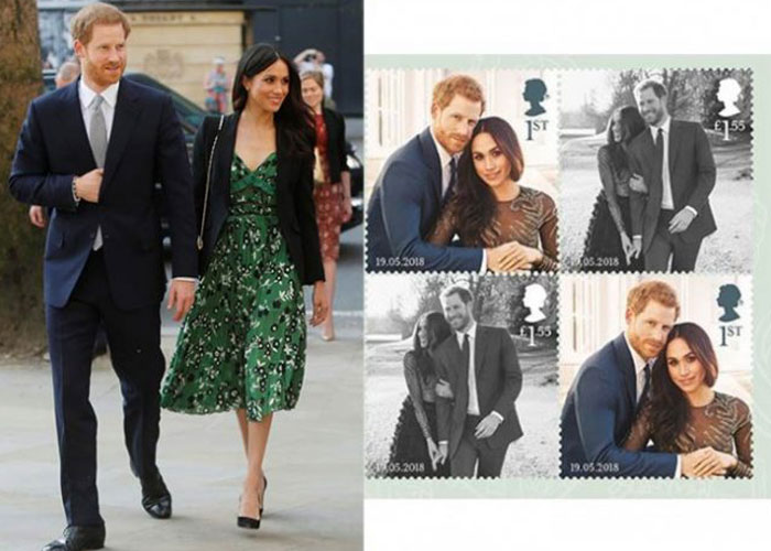 Presentan sellos postales de la boda real de Enrique y Meghan