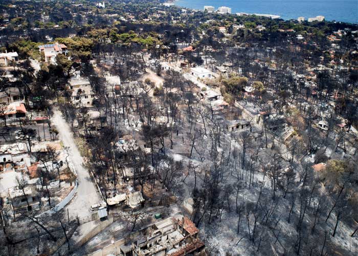 Grecia hace cálculos del coste humano y económico de los peores incendios que el país recuerda, mientras los equipos de emergencia siguen buscando a los desaparecidos en casas y vehículos consumidos por el fuego ? Savvas Karmaniolas y @atzortzinis #AFP pic.twitter.com/Be7W6HqYhq