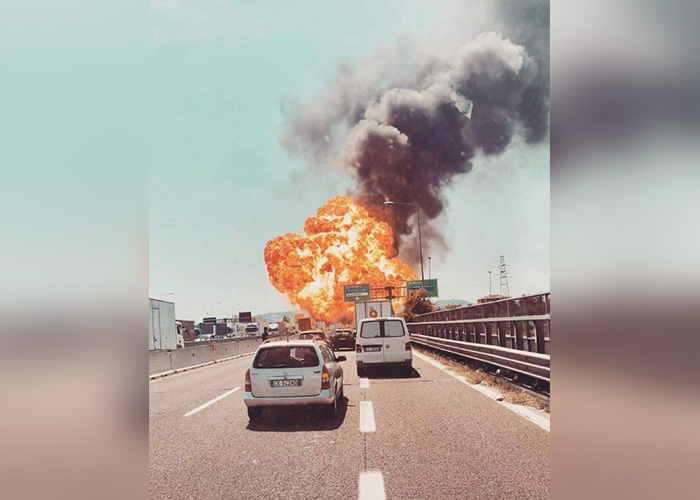 La explosión registrada cerca del aeropuerto de Bolonia en Italia fue debido a un accidente de tránsito involucrando a un camión cisterna pic.twitter.com/Vqy17TAZAC
